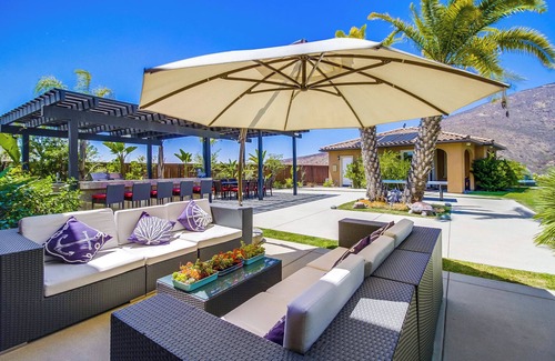 With a resort-like backyard and unobstructed mountain views, this Chula Vista vacation rental will make your extended stay one to remember! Relax in the spa or by the fire pit and admire the lush palm trees while the kids laugh on the playground. Boasting 6 bedrooms, 6.5 baths, and 5,800 square feet, 'Day Dream Palace' has plenty of space! Going out? Hit nearby trails or the San Diego Zoo. Paradise awaits!
