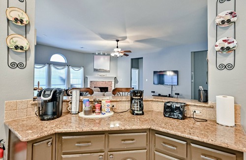 This home has all the amenities you could want for your stay. The beautiful backyard is the main focal point and has a full size Pool(Deep-end 6ft), 8 foot Privacy fence all around with locked gate, covered patio with lounging furniture, a loud Bluetooth Speaker inside the overhead fan that can be used on phone or play audio from living room sound system, a propane grill with all necessary utensils, and an elevated tanning deck with tanning chairs for relaxing! The front of the home has a Gym with free weights, treadmill, Bowflex, workout mat w/medicine balls, and more for your complete workout if you choose during your stay without leaving! The front office has a PC computer for you to use during your stay, and a printer to print tickets if needed.