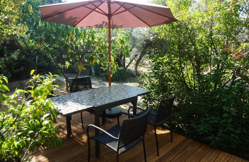 5 apartment-resort spread over 2 stone buildings with 11 rooms, 26 beds, 5 bathrooms, 5 furnished terraces, large private swimming pool (10x5m), garden and 10 000m² park (old olive grove). Figs, cherries, grapes, apples, pomegranates, apricots, loquats, almonds, blackberries can be enjoyed in the garden in season. Uzes beautiful area, rich vegetation, close to the Haribo Museum.