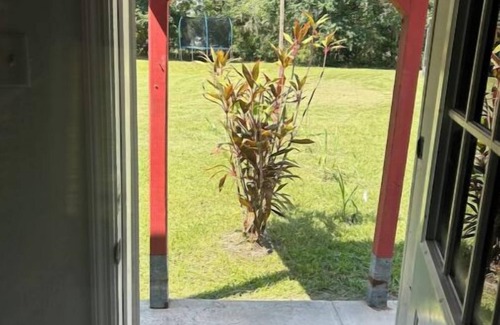 Residence sits on private 3 Acre - tropical estate with over 150 trees, small pond, and a plethora of animal wildlife to see and hear. The interior offers an open floor plan with a 80" Television and all the utensils, toaster, stove, microwave, cups/plates, and of course a Keurig coffee maker with complimentary coffee.