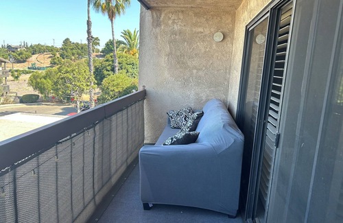 Private, lockable bedroom with private bath and balcony in a quiet, gated Signal Hill condo. 30+ nights only (simple lease). Share kitchen, living room, laundry, pool and jacuzzi with one respectful long-term veteran resident. Fast Wi-Fi, utilities, and resident parking included. Near Long Beach hospitals, CSULB, shops, and beach.