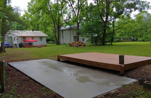 Private camper pad in the Deep Creek Area of Bryson City, just a few hundred yards away from Deep Creek Park. The pad is located in the back yard of our weekend home.