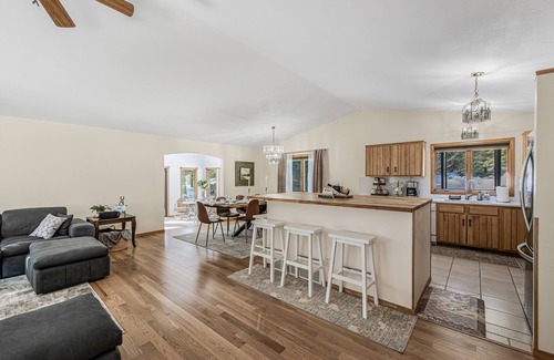 Escape to Nature – Your Perfect Getaway Awaits! Discover the ultimate retreat where comfort meets the great outdoors. Our spacious home offers three inviting bedrooms on the main floor, plus a cozy enclosed sleeping area on the ground floor. Sleep soundly with two king beds, a queen bed, a full bed, and a twin bed. The open-concept layout features 2.5 bathrooms, a fully equipped kitchen with a large island, and a long dining table overlooking a bright, airy living room. Unwind in the sunroom with breathtaking forest views, or head to the basement, where a smart TV, fireplace, and mini bar set the perfect mood for relaxation. Step outside to 12 acres of pure tranquility—stroll peaceful forest trails, gather around the fire pit, relax in the gazebo, or lounge in hammocks during the summer. Fire up the flat-top barbecue grill for an unforgettable outdoor dining experience. Adventure is right around the corner! Hartman Creek State Park is just 6 minutes away—bring your bikes for scenic countryside rides. Enjoy horseback riding within 10 minutes, explore nearby lakes and rivers for fishing, or tee off at several golf courses. Don't miss the Saturday farmers' market and charming antique shops, where you can find the perfect souvenir to take home. When you stay with us, you’re not just booking a stay—you’re embracing the best of country living.