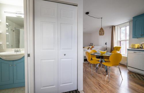 Food & DrinkTea/Coffee makerBathroomBody soap, Free toiletries, Bathtub, Bathtub or shower, Conditioner, Toilet, Toilet paper, Towels, Hairdryer, Private bathroom, Shower, ShampooMedia & TechnologyTV, Flat-screen TV, Streaming service (like Netflix)GeneralCarbon monoxide detector, Heating, Ironing facilities, Fire extinguisher, Iron, Soundproof, Trash cans, Smoke Alarm, Air conditioningKitchenMicrowave, Dishwasher, Cleaning products, Toaster, Coffee machine, Dryer, Dining table, Kitchenware, Oven, Stovetop, Wine glasses, Electric kettle, Washing machine, Kitchen, RefrigeratorLiving AreaDeskBedroomLinensBuilding CharacteristicsPrivate apartment in buildingRoom AmenitiesSocket near the bed |