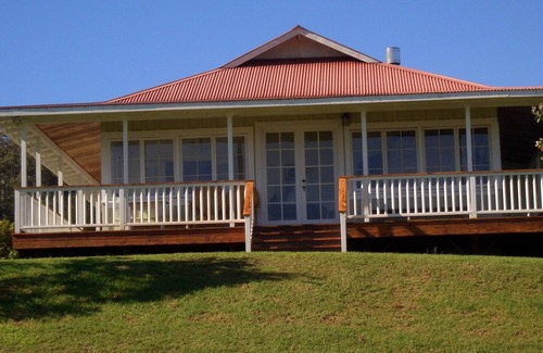 Our historic, plantation bungalow features 2 bedrooms, 2 baths, a day-bed, a gourmet kitchen having an antique porcelain double sink, modern stainless steel appliances including refrigerator, gas stove with an electric oven located on an island, microwave, kitchen fully furnished with dishes (some antique), glasses (including wine glasses), cutlery, pots, pans, baking pans, spices, and partly stocked pantry. Kona coffee and various teas are sometime available in the 'coffee bar'. Other features include high ceilings with original mouldings, antique lighting, wood burning fireplace, wrap around porch to enjoy those breathtaking views, vistas from every room, cable t.v., DVD player, CD stereo (music will never sound better), and a walk-in, slate shower with panoramic views! The two bedrooms have queen sized beds that sleep 4 adults. One bedroom has a princess cradle for an infant or toddler. The living room has a 'day-bed' for a fifth adult or two if you like it cozy. A stacked washer/dryer is also available.