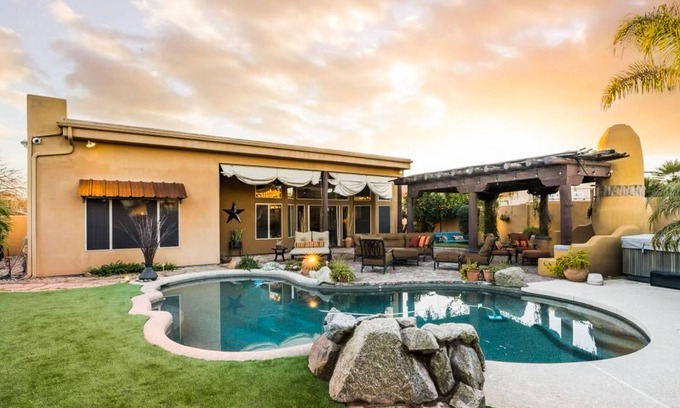 Pueblo-style home with private pool, patio, lovely yard, kiva fireplace, firepit has 3 Bedrooms , 2 Bathrooms, and max occupancy of 6 people. The minimum rental for this property is 1 nights, but this can change depending on the season you plan on staying. Previous guests have given good rated it, and VRBO labeled it a top-rated House because of the excellent services rendered by the owner or manager of this House, and has consistently provided great experiences for their guests. Most families or guests that use it recommend it to their friends and some of them are repeat guests. House has a friendly neighborhood, and the La Paz At Desert Springs has interesting places to visit. If you want to learn more about the House in La Paz At Desert Springs, such as places to visit and things to do nearby, you can check below to learn more.