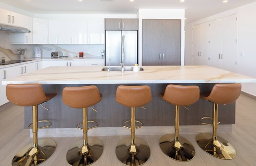 Puerto Penasco brings Encantame Towers Resort, Viento-401 3 bdrm/3 ba Modern Luxury Condo, home away from home! This 4th flr corner unit has one of the most extended, spacious wrap-around terraces, with unforgettable sunsets and pristine ocean views! Boasts modern aesthetics throughout,1850 sq ft. interior living, 2 stunning Owner En-Suite's with ocean/beach views and black out curtains for a perfect good night/day sleep! Wall to wall slide open glass doors brings beachful living into an incredible open kitchen perfect for cooking, entertaining and welcome to bring in a private chef for a fabulous dinner! Viento- 401 is generously spacious, comfortable and relaxing for all!
