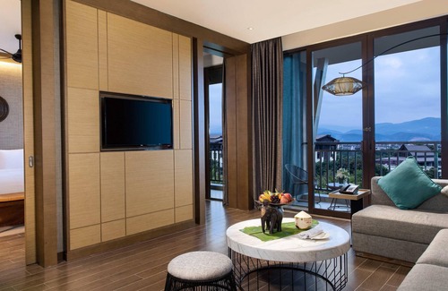 Pullman Resort Xishuangbanna offers 412 accommodations with minibars and laptop-compatible safes. Rooms open to balconies. Pillowtop beds feature down comforters and premium bedding. A pillow menu is available. LCD televisions come with cable channels. Bathrooms include separate bathtubs and showers with rainfall showerheads, bathrobes, slippers, and designer toiletries.