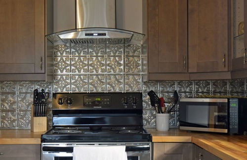The kitchen features new appliances: fridge, stove, microwave, dishwasher, and toaster. We love the details here, from the backsplash and the butcher block countertops to the stainless range hood. Central island with bar seating for two. There’s also a Keurig and a pot for drip coffee. We stock the house with coffee from Lake Wind Coffee just down the road in Port Wing, and we’re happy to provide you with locally produced food—meats, vegetables and more—to cook up a South Shore feast!