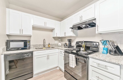 - Fully-equipped kitchen with pots & pans, bakeware, dinnerware, silverware, cookware, blender, toaster, and more!