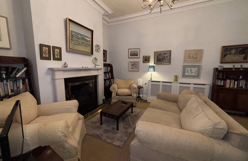 Elegant Living Room: Relax by the fireplace, surrounded by a collection of classic Irish décor and cozy seating.