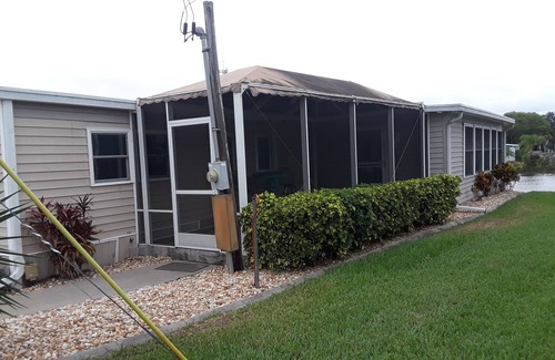 Beautiful modular spacious 1260 sq ft 1 1/2 bath home with dock located on canal of Lake Dora. There is a fishing pier, a covered boat slip with lift, when available, several local boat launches nearby, and parking for 2 vehicles or one vehicle and boat/motorcycle trailer. Home is fully equipped.Discounts available for extended stays. It has a full size washer/dryer, full kitchen, 2 flat screen TVs, wifi , and more. Master bedroom has queen size bed, second bedroom has 2 twin beds with private bathroom. There also are is a sofa bed!