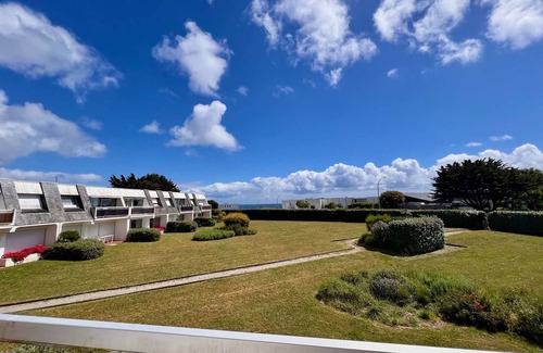 This pleasant 2 romms with sea view of almost 44m² for 2 persons, is located on the first floor, door n°8 of the residence "Le Conguel", in the thalassotherapy district.