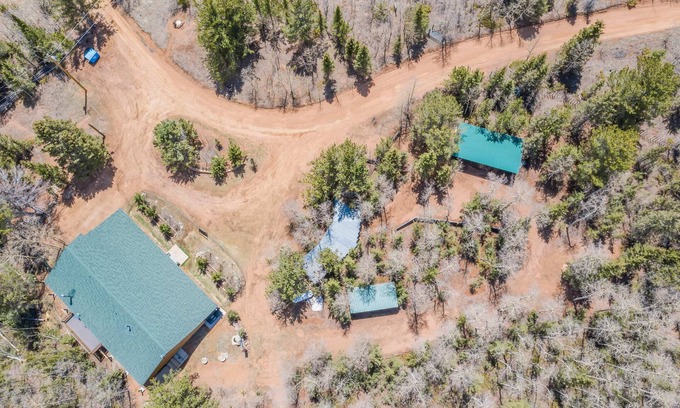 You'll be just 0.8 miles off Highway 67, and under 4 miles (7 minutes) to Cripple Creek. You'll drive through a county area that is an eclectic mix of million-dollar mansions and old shacks on your way to the cabin. The 0.8 mile drive off the highway is on a maintained dirt road (and plowed in the winter). You'll turn right after a trucking yard, pass a few houses, and come to this cabin near the end of the road.