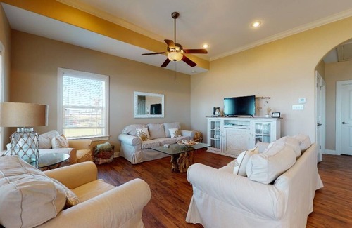 One of the most loved features of this home is the large deck with beautiful views of the huge ships entering the Galveston Channel. Bring your morning coffee, on the deck, to enjoy the beautiful sunrises during your stay.