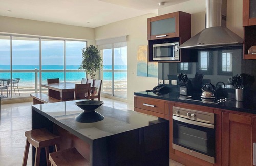 Located along stunning Playa Miramar beach, one of the most peaceful and private retreats. The perks at this luxury rental have been set to overdrive for fun in the sun and pleasant repose. Get the relaxation you deserve at this exclusive oceanfront condo. The seamlessly harmonized Interiors of this elegant condo are equally impressive to the breathtaking ocean view. Relax in the jacuzzi by the pool or sleep soundly with nothing but the ocean waves as you’re soundtrack.