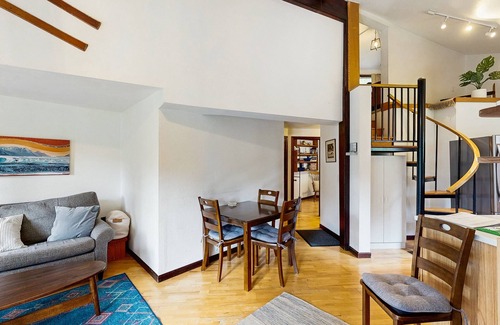 Secluded and private, this contemporary getaway will be just the place to call home base on your next ski trip to Anchorage! With modern furnishings, beautiful tall ceilings, and a spacious deck with mountain views, you will have no trouble slipping into vacation mode in no time. After a full day of outdoor adventure, the chef of the group will love hopping into the fully equipped kitchen to curb appetites with a favorite recipe. Not to mention, the spiral staircase leading to the upper level gives a sense of separation for some added privacy. When the stars come out, gathering in the living area for a movie on the flatscreen TV will be the perfect way to settle down each night and enjoy the company of loved ones. Don't forget to bring the furry family member along too, as this retreat is dog-friendly!