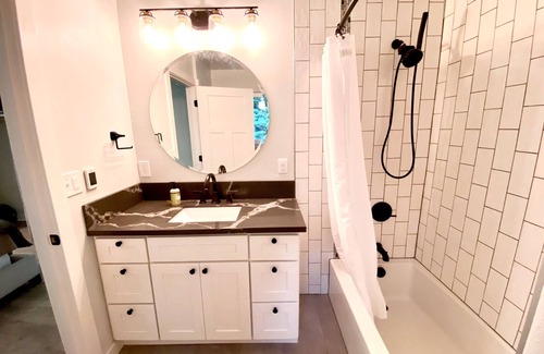 Enjoy a peaceful stay at the Plum Cottage! Located just minutes from Downtown Portland and OHSU. This is a newly remodeled, fully-separate one bedroom cottage ADU with a large deck overlooking a creek with towering trees. The cottage can accommodate up to three, with a pull-out single bed in the living room.