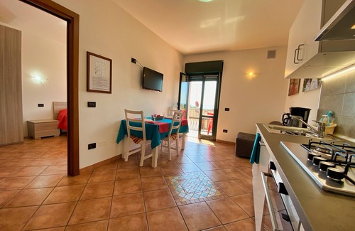 The apartment is located on the first floor facing the street, suitable for a maximum of 3 people and consists of a living room with kitchenette and sofa bed for 1 person, balcony with lake view with table and chairs, bedroom with double bed for 2 people . Room facilities: Safety Deposit Box, Shower, Seating Area, Heating, Sofa Bed, Tiled / Marble floor, Toilet, Bathroom, Hairdryer, LED TV-SAT HDMI-USB IN FLAT 32, American Coffee Maker, Corner cooking facilities, refrigerator, dining area, electric kettle, kitchen utensils, balcony, lake view, free WiFi, air conditioning.