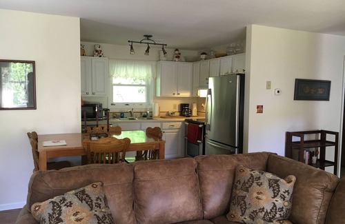 Built in 2011, this Non-Smoking, 2 bedroom 1 bath house is accessible with wide doors that accommodate wheel chairs; 1 level and no steps! This home is located just steps from the Ravens Ford River. Be sure to bring your fishing pole for the best fishing in town! Kayaks, canoes and tubes are welcome!