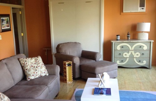 The kitchen is fully stocked with Crate and Barrel dishes, cookware & casseroles and a microwave. There is an excellent Queen size Murphy bed with a 2 inch gel mattress topper, and built in LED reading lights. There are two Hunter ceiling fans, gas logs, flat screen TV and an additional heater/AC wall unit. We have 5G WiFi for entertainment. The wood is all heart of pine and original barn board.