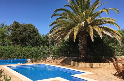 The House "Os Amantes" is located in a quiet area of Quinta do Paraiso Country Club, just 10 minutes walk to the center of Carvoeiro, with an excellent beach and a good infrastructure. The house with typical Portuguese style was renovated recently. The pool and the pool terrace is new. The pool is heatable and has a jet stream. The house has 2 bedrooms, each with 2 beds. An additional sofa bed for 2 persons is available in the living room. Both bedrooms have large wardrobes and are comfortably furnished. The bathroom, with typically Portuguese tiles, has 2 marble sinks, WC, bidet and a bathtub shower. The living room has a sofa and a beautiful fireplace. A satellite flatscreen tv offers international channels. There is also a dining area. The kitchen is well equipped with fridge and freezer, microwave, dishwasher and coffee machine. If you are visiting in the summer the air conditioning is available against separate charge. It's a table for 6, perfect for having breakfast or a relaxing dinner as you watch the sunset. There is also a barbecue. A parking possibility is available. The roof terrace offers a fantastic view overlooking the palm valley towards the deep blue sea. The best beaches of the Algarve are located right around Carvoeiro, with fine sand, cliffs and the turquoise shining ocean. A supermarket and restaurants are nearby. The maid is cleaning once a week. The gardener once. There is a possibility of using the washing machine and a dryer. There are three mountain bikes for using (no maintenance warranty).