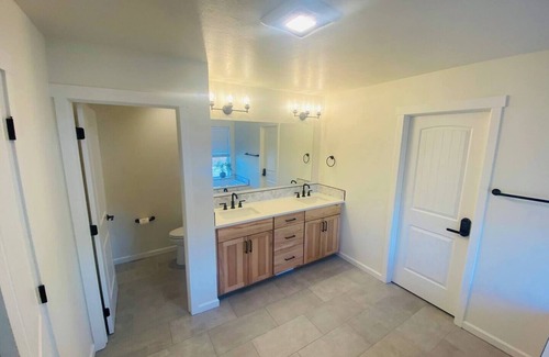 The ranch is three minutes off I-90 and 12 minutes from downtown Spokane with an amazing lake view! The perfect home for two families with kids or four couples. Large gourmet kitchen is great for cooking dinners together! Seating for the entire group! Spacious open concept, large family room includes living room, dining room and kitchen— a great option to travel with your family and experience ranch life in the country!