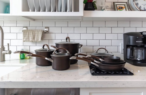 - Fully equipped with a toaster, coffee maker, rice cooker, blender, kettle, pots, pans, silverware, cookware, dishes, and cups.