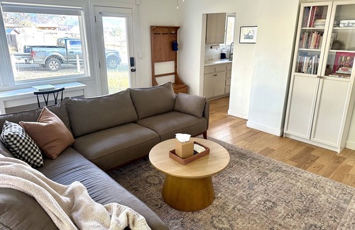 Our 1000 sf farmhouse is centered in Teasdale, a charming hamlet with sweeping red rock mountain views. A five-minute drive to Torrey, 20 minutes to the Capitol Reef visitor center, and one hour to Grand Staircase-Escalante via scenic Boulder Mountain, our home is at the heart of it all. After a long day of hiking and exploring, come home to a hot shower, spectacular night skies and quiet seclusion.