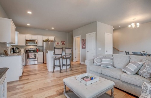 Built in 2018 this 3 story townhouse has a great floorplan. 2 bedrooms,2.5 baths plus and oversized 2car garage. Open style kitchen that comes equipped with Keurig Coffee Maker, oven, microwave, dishwasher and stainless refrigerator. Small outdoor patio with seating and washer&dryer available for use during your stay. Fantastic location if visiting the University of Arkansas ( 1-1/2 mile drive) or visiting the surrounding Fayetteville area. Home is perfect for a family or couples . comfortable and clean! (sleeps 4)