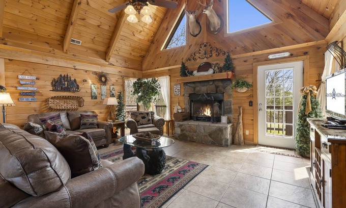 Trail's End Cabin is a true log cabin and is the perfect getaway for a romantic weekend or a family trip. This three-bedroom, two-bathroom 1 story cabin has everything that you need to make you feel right at home! Feed the family in the fully equipped kitchen, or veg out on the couch and watch the game! During those cold weather months take advantage of the seasonal real wood-burning fireplace and during warm months you can still have that ambiance with the electric flame-only insert! Roast marshmallows at the LARGE fire pit, soak in the hot tub, or grill out on the fantastic grill! This cabin backs up to the woods, offering you a good amount of privacy!