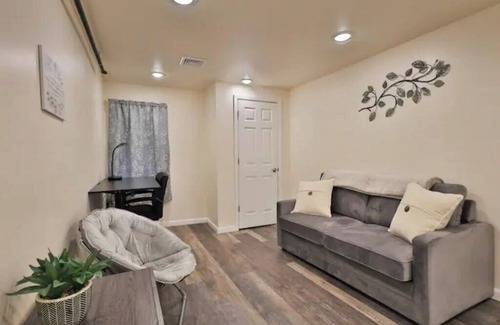 There is an upstairs apartment over part of this apartment, so please be aware there may be occasional noise from a guest upstairs. The 42" screen in the living room is capable of streaming but we have no channel subscriptions.