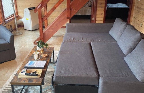 Relaxing upper unit of Red Bluffs Lodge located on the banks of the Belle Fourche River just minutes away from Devils Tower. This unit has 2 bedrooms on the main level with queen beds in both bedrooms. In the living area the couch will pull out into a Full sized bed. Taking the stairs up to the loft area there are 2 full sized beds along with a cozy sitting area.