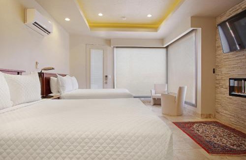 Food & DrinkTea/Coffee makerBathroomHairdryer, Toilet paper, Bathtub, Spa tub, Walk-in shower, Shared toilet, Shower, Shampoo, Conditioner, Toilet, Private bathroom, Body soap, Towels, Free toiletries, Bathtub or showerMedia & TechnologyTV, Flat-screen TV, Satellite channels, Cable channels, Video, Streaming service (like Netflix)GeneralFire extinguisher, Iron, Smoke Alarm, Private entrance, Fan, Carbon monoxide detector, Ironing facilities, Heating, Trash cansKitchenMicrowave, Wine glasses, Refrigerator, Coffee machine, KitchenwareOutdoorsPatio, Outdoor furniture, Outdoor dining areaLiving AreaFireplaceViewMountain view, ViewBedroomLinensAccessibilityEntire unit located on ground floorPool and SpaHeated pool |