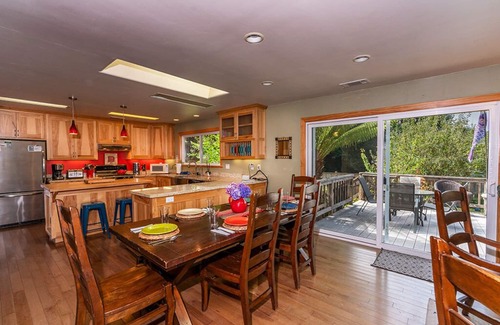 Welcome to Redwood Beach Retreat, an exquisitely furnished three-bedroom, two-bathroom residence situated amongst the majestic Redwood trees. This serene retreat offers an ideal setting for families and discerning guests seeking a rejuvenating escape, conveniently located a short distance from downtown Trinidad, picturesque trails, and unspoiled beaches. Pet Policy: One well-behaved canine companion is permitted, provided it is not left unattended within the premises or grounds.