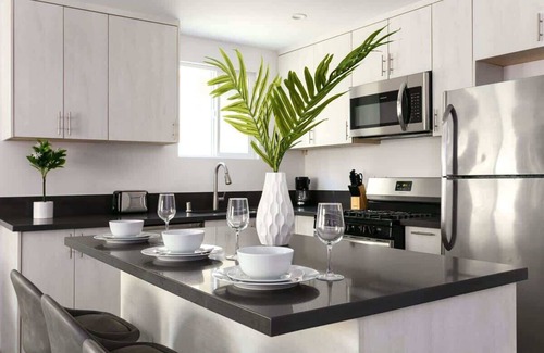 Relax in this stylish 3BR LA apartment designed for up to 8 guests, featuring 2 king beds and 2 doubles with new hybrid mattresses. Stay connected with free WiFi, stream on HD Smart TVs, and enjoy the comfort of central AC and heat. Cook with ease in the fully stocked kitchen, and feel at ease with free parking, professional cleaning, and a secure gated setting. Perfectly located, this clean and private retreat offers comfort, safety, and convenience for your LA getaway.