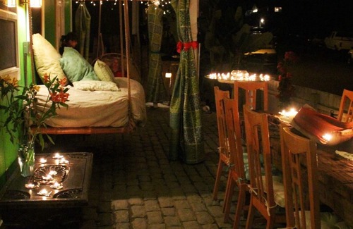 Our 800 sq ft wraparound cobblestone porch overlooks our beautiful peaceful street and expands our bungalow into an outdoor environment, with its dining table for 12 made from 100+ yr old barn wood. Close our outdoor curtains for even more privacy as you lounge on the hanging bed and take in the scent of the fresh flowers along the perimeter of the veranda. Ahhh...