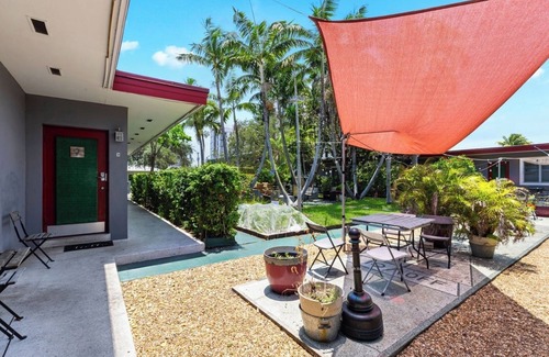 Bright 1BR/1BA studio in Hollywood, FL—perfect for families or small groups. Sleeps up to 6, just minutes from the beach, dining, and downtown. Pet-friendly ($150 fee). Includes 1 unassigned parking spot (first come). $100 refundable deposit required for check-in. Some noise may occur (multi-unit property). For laundry, visit unit #2 and ask the manager for access. Cozy, stylish, and fully equipped!
