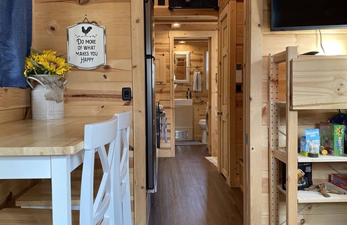Located on a ski-sized lake, it is great for fishing, exploring; and relaxing. This home is located on an active family farm, complete with cows, donkeys, miniature goats and chickens. You can sit on the large, screened deck and watch the picturesque sunsets over the lake as well as the animals as they roam in the fenced area, just 100 feet away. A nearby hammock completes the total rejuvenating experience. This certified green Tiny has two bedrooms, two lofted sleeping areas upstairs and one full bathroom with a stand-up shower.