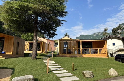 Discover our cosy Relaxing Nature Lodges at the Glamping Resort Rio Vantone, a perfect refuge for families and couples seeking tranquillity and a connection with nature. These modern and tastefully furnished accommodations offer space for a family of up to 6 people and are picturesquely located in the mountains with breathtaking garden and mountain views.