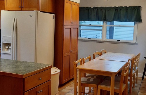 * Eat-In Kitchen with appliances, Keurig (K cup coffee provided), pots, pans, plates, eating utensils, microwave, blender, and toaster