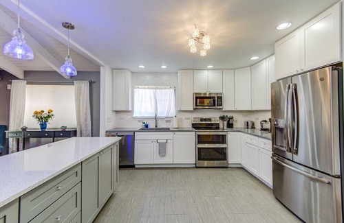 The remodeled one-level property is spacious with 2,371 square feet and offers three bedrooms, three bathrooms and a bonus room, to accommodate up to eight guests. It is also pet friendly (up to two dogs allowed with prior approval and additional $200 non-refundable pet fee).