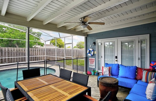 This cozy, updated, three-bedroom, two-bath home with an in-ground swimming pool (safety fenced) is the perfect location to relax before your cruise. This home features remote keypad access for guests, a game room, wireless internet, a well-equipped kitchen, and nearby grocery stores and restaurants. It's a beautiful getaway, only 40 minutes from the Orlando International Airport. It is near attractions like Port Canaveral (10 minutes), Cocoa Beach, and the Kennedy Space Center Complex.