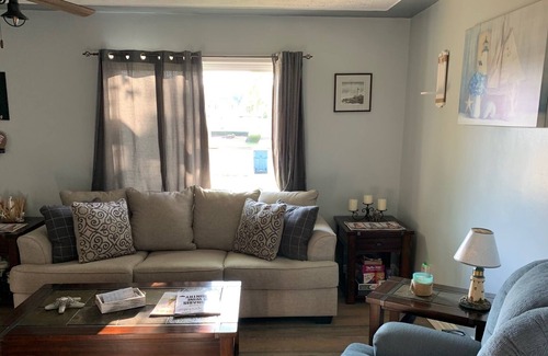 Cozy renovated ranch home. Brand new kitchen appliances, new bathroom, and homestyle living room with electric fireplace tv stand that holds a 55" smart tv. A large garage that can accommodate more overnight guests that don't mind camping style accommodations. Plenty of outside parking for extra cars, boat, motorcycle, small camper. The house is located in a business district so not in a residential area. There is a Chiropractor office on one side where he also resides and a Dentist office on the other. I do allow the ladies from the Dentist office to park out front as it provides an appearance of being occupied even when it is not. I've had one complaint in the 2 years that this was an issue. If you feel it would be an issue also I understand. The road that it is located on is a 4 lane road that can be busy at times with the associated noise. This has only been an issues with a couple guests throughout the many we have had.