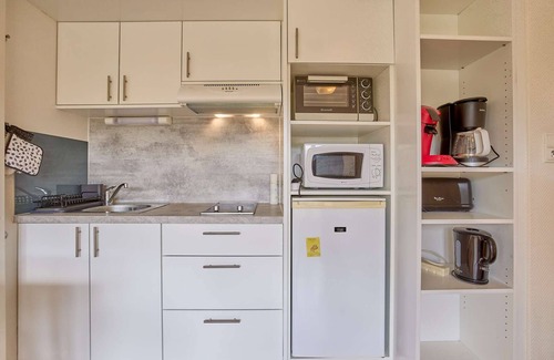 This bright and functional studio is ideal for a pleasant stay in the Gers region. This renovated, air-conditioned studio with a 22m² balcony is located on the 1st floor of the residence and faces south. It features two single beds, a television, a dining area, and a kitchen equipped with a mini-oven, microwave, electric stovetop, refrigerator, and a Senseo coffee maker. Its bathroom has a shower, vanity unit, and toilet.