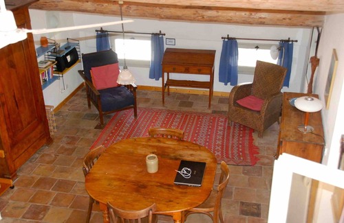 Uzès, the first duchy of France, near Nimes, Avignon and the Pont du Gard is a medieval city where art and the art of living are skillfully combined. The apartment (for 2 to 4 people) is located in the heart of the historic center of Uzès in a listed 17th century building (Place Dampmartin). The apartment has a living room with a fitted kitchen. The living room, as well as the bedroom, open onto a 12 m2 southwest-facing terrace. The apartment has been recently restored and is equipped with every comfort. The mezzanine is a relaxation area with a TV and a sofa bed.