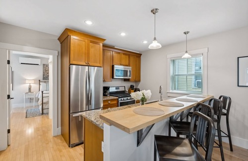 This second-story condo is part of a gorgeous old building that dates back to the 19th century. On this quiet street in a neighborhood renowned for its old-world charm, you can leave your car in one dedicated parking space and get around entirely on foot. The historic Old Port is only a few minutes away by Uber or car. Many of Portland's tastiest restaurants are within walking distance, so you'll always have delicious options. The Western Promenade overlooking the Fore River and Commercial Street are also within strolling distance. Indulge your creative side at the Portland Museum of Art or the Maine College of Art, which are less accessible on foot. Relax at the Nine Stones Spa, then try one of the many breweries or bars as the evening approaches for a refreshing drink. Ride the Casco Bay ferry before returning to your vacation home for an even more scenic way to view Portland.