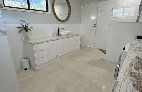 Comfort is assured with the main living space air-conditioned with a ceiling fan, and the island vibe is continued with comfortable cane furniture and coastal decor. Wifi and a smart TV means family members can stay connected throughout their stay. The fully renovated bathroom / laundry with walk in shower and front loader washing machine only adds to the comfort factor.