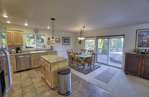 The home is 2,000 square feet, fully appointed, and features granite countertops in the kitchen. It sleeps six in three bedrooms with queen-size beds, plus a comfortable sofa bed in the loft. Enjoy the huge deck, perfect for wildlife viewing, stargazing, yoga, or simply relaxing while barbecuing with an amazing view!