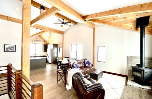 A wood burning fireplace makes the living space cozy and quaint. A full kitchen is at your disposal for meals before and after adventures. Views from every window give you the full Teton range experience.